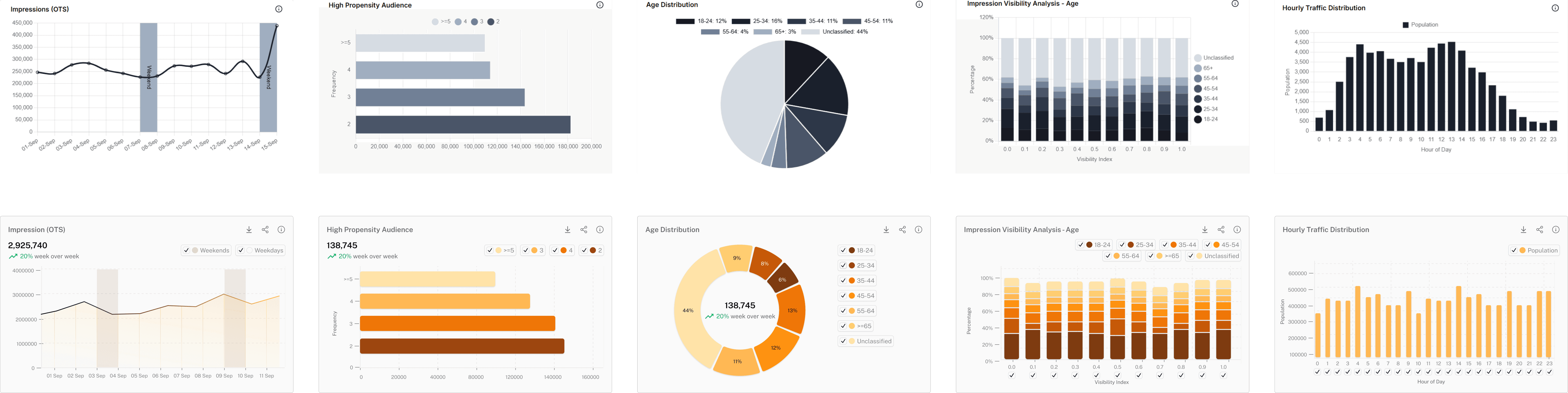 Improved data visualization by introducing clearer hierarchies, consistent color schemes, and modular chart layouts, making key metrics easier to compare and insights quicker to grasp.