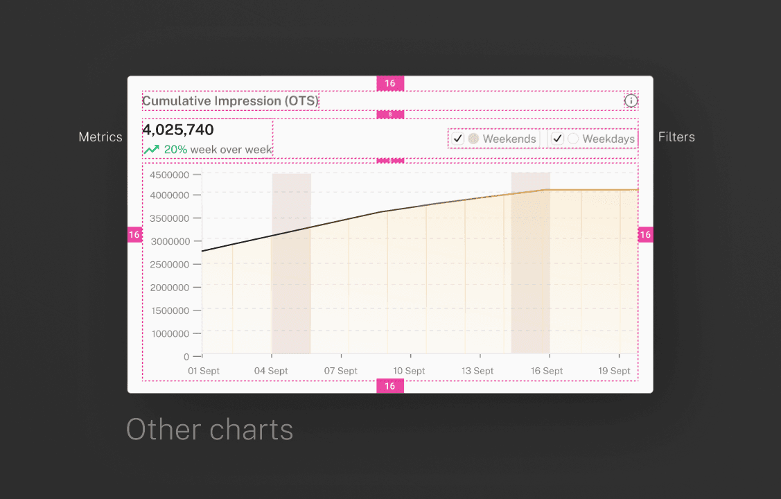 Improved graph interactivity by enabling users to toggle legends and apply filters directly within each graph, allowing dynamic exploration of metrics and reducing reliance on static views. This made data analysis faster, more intuitive, and customizable to user needs.