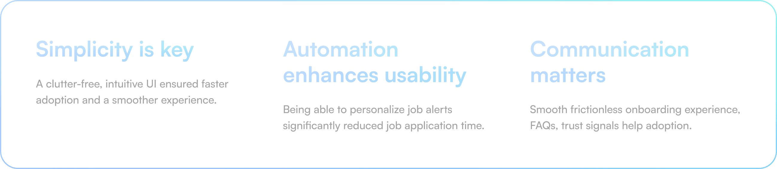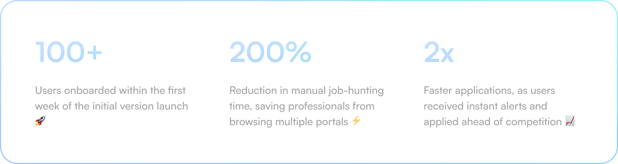 A simple, no-friction onboarding flow where users can sign up, set preferences, and start receiving job alerts in minutes—without navigating multiple complex job boards.