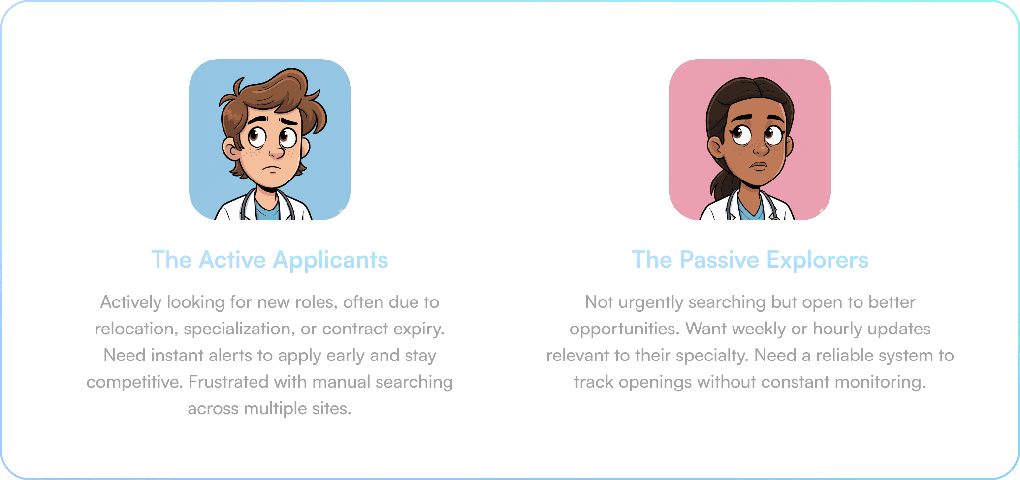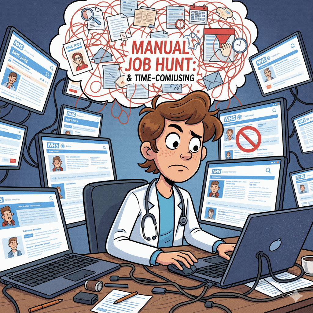 The UK healthcare system, led by the NHS, employs thousands of medical professionals who frequently seek new roles for career growth, relocation, or specialization. However, job hunting is often challenging due to fragmented listings across multiple portals, high competition for popular roles, and most importantly the job seekers have to constantly refresh and track these govt portals for new job openings. As a result, professionals risk missing relevant opportunities, making the process time-consuming and inefficient.