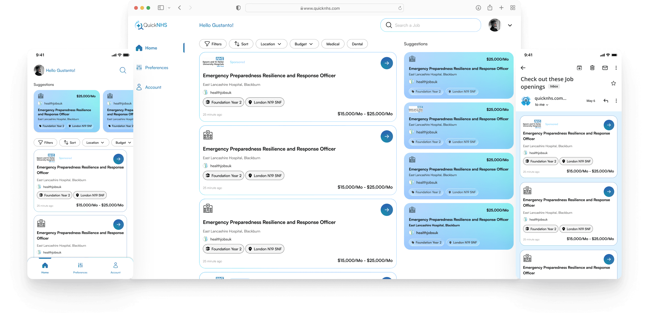 Designing QuickNHS was a deep dive into addressing the real challenges faced by doctors and healthcare staff in finding the right jobs quickly and effortlessly.